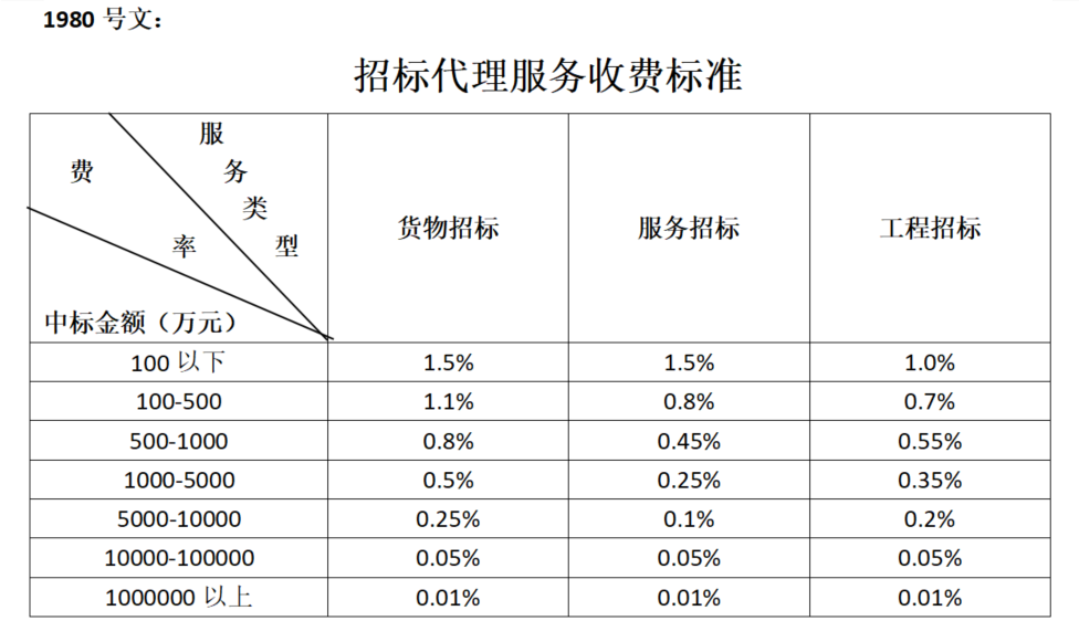 招標(biāo)代理服務(wù)收費標(biāo)準(zhǔn)